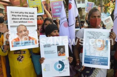Photo Caption : Activists, Dalit, Women and Human Right Organisations in Karnataka staged a protest to reject communal laws at SBM Circle, in Bengaluru on Tuesday 1st December 2020