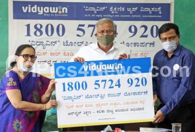 Event Description : Minister S Suresh Kumar launching the Vidyawin toll free number at Vijayanagar, in Bengaluru on Wednesday 2nd December 2020