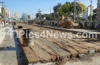Photo Caption : White topping work in progress at Thanisandra and Nagawara junction, in Bengaluru on Friday 4th December 2020