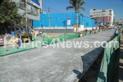 Event Description : White topping work in progress at Thanisandra and Nagawara junction, in Bengaluru on Friday 4th December 2020