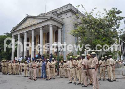 Tight police security at town Hall, as Pro Kannada outfits called for Karnataka Bandh, in protest against the state governments move to set up Maratha Development Authority (MDA), in Bengaluru on Saturday 5th December 2020