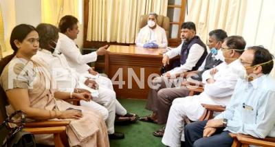 Photo Caption : CLP Leader Siddaramaiah with KPCC President DK Shivakumar, Congress Leaders MB Patil, Eshwar Khandre, Dr. G Parameshwar and others seen at a meeting on candidate selection for the by-election in Belgaum Lok Sabha constituency, in Bengaluru on Monday 7th December 2020