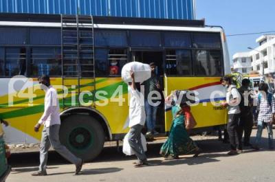 Photo Caption : Commuters using Private busses and Auto rickshaw at KR Market following BMTC and KSRTC employees strike to press their various demands, in Bengaluru on Friday 11th December 2020
