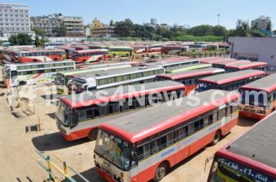 Photo Caption : KSRTC busses parked at Majestic bus stand following BMTC and KSRTC employees strike to press their various demands, in Bengaluru on Friday 11th December 2020