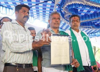 Photo Caption : Kodihalli Chandrashekar and BMTC and KSRTC workers Association President Chandrappa showing workers demands approved government letter at Freedom Park during their protest, in Bengaluru on Monday 14th December 2020