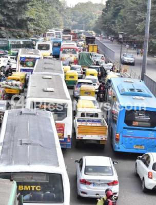 Photo Caption : Traffic Jam at Seshadri Road, in Bengaluru on Tuesday 15th December 2020