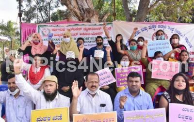 Members of Unaided Minorities Schools Management Association staging a protest at Freedom Park to press their various demands, in Bengaluru on Tuesday 15th December 2020