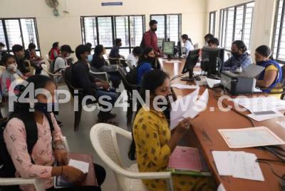 Photo Caption : M Tech, MBA, MCA students wearing face masks for Covid-19 gathered at CET Centre during document verifications for the admission, in Bengaluru on Wednesday 16th December 2020