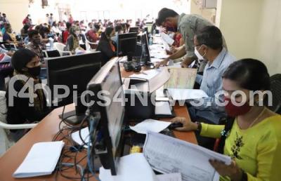 Photo Caption : M Tech, MBA, MCA students wearing face masks for Covid-19 gathered at CET Centre during document verifications for the admission, in Bengaluru on Wednesday 16th December 2020