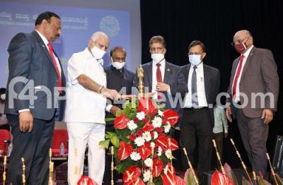 Photo Caption : CM BS Yediyurappa inaugurating the 103rd General body meeting of FKCCI (Federation of Karnataka Chambers of Commerce and Industry) at FKCCI, also seen are FKCCI President Perikal. M Sundar, Senior Vice President IS Prasad and others, in Bengaluru on Wednesday 16th December 2020