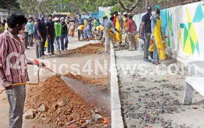 Photo Caption : MLA Rizwan Arshad with BBMP Commissioner Manjunath Prasad and others painting on the wall during inauguration of "Project Shivajinagar", in Bengaluru on Saturday 19th December 2020