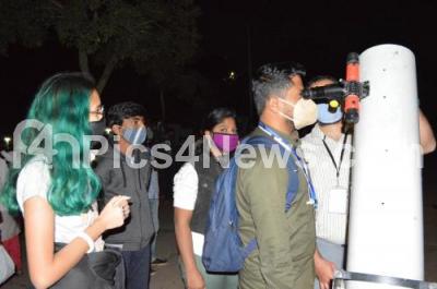Photo Caption : Stargazers gather at Jawaharlal Nehru Planetarium to get a glimpse of the planets Jupiter and Saturn Great Conjunction happening for the first time in 400 years, in Bengaluru on Monday 21st December 2020