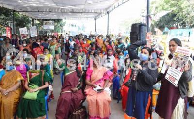 Event Description : Members of AIMSS (All India Mahila Sanskritik Sangathan), AIDWA (All India Democratic Women Association), AIPWA (All India Progressive Women Association) and NFIW (National federation of Indian Women) stage a protest in support of the farmers protest at Gandhi Statue, in Bengaluru on Tuesday 22nd December 2020