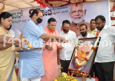 Photo Caption : MLA Uday Garudachar paid tribute to former PM Atal Bihari Vajpayee on the occasion of birth anniversary program of former PM Atal Bihari Vajpayee at Tank Garden, Someshwarnagar, in Bengaluru on Friday 25th December 2020
