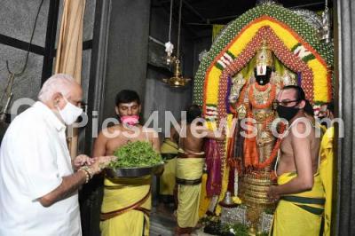 CM BS Yediyurappa and DCM Govind Karjol participated in Ykunta Ekadashi pooja at Venkateshwara temple, Mahalakshmi Layout, in Bengaluru on Friday 25th December 2020