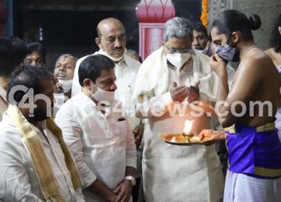 Photo Caption : CLP Leader and Former CM Siddaramaiah with and Congress MLAs participated in Ykunta Ekadashi pooja at Venkateshwara temple, Rajaji Nagar, in Bengaluru on Friday 25th December 2020