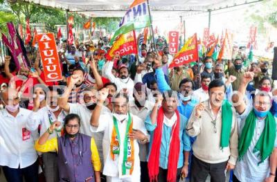 Photo Caption : Various organisations leaders and members protest in support of the farmers protest and against the central governments Agri Bill, in Bengaluru on Friday 25th December 2020