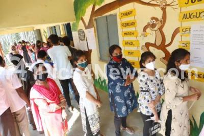 Photo Caption : People standing in Queue to cast their vote for the Sulikere Gram Panchayat Election at Ramasandra Poling Centre, in Bengaluru on Sunday 27th December 2020