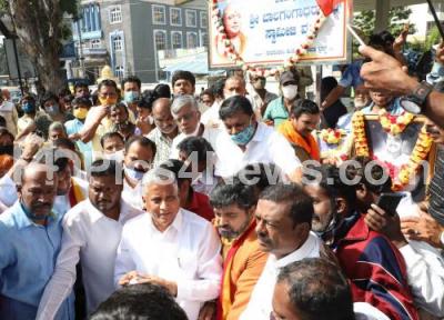 Event Description : Minister V Somanna and Actor Anirudh seen during the inauguration of laying foundation stone for the Dr. Vishnuvardan statue place at Vijayanagar, in Bengaluru on Monday 28th December 2020