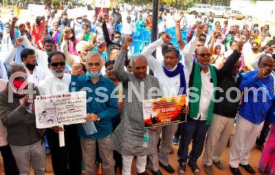 Members of Bhima Korengav Horata Samiti - Karnataka holding placards and raise slogans during their protesting and demanding for justice, liberty, equality, fraternity release, in Bengaluru on Friday 1st January 2021