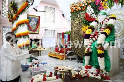 Devotees perform pooja at Sai Baba temple, Malleshwaram on the occasion of New Year Day, in Bengaluru on Friday 1st January 2021