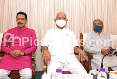 Photo Caption : BJP State President Nalin Kumar Kateel , CM BS Yediyurappa, BJP Ministers and BJP MLAs during BJP MLAs meeting at a private hotel, in Bengaluru on Monday 4th January 2021