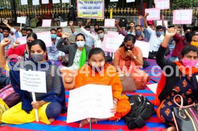Photo Caption : Students of FDA and SDA 2017 batch staging a protest at Mourya circle, demanding appointment orders to FDA and SDA students, in Bengaluru on Wednesday 6th January 2021