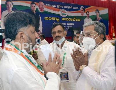 Photo Caption : CLP Leader Siddaramaiah and KPCC President DK Shivakumar seen during inauguration of "Sankalpa Samavesha" program, in Bengaluru on Friday 8th January 2021