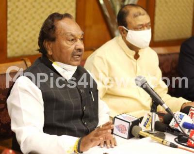Photo Caption : Minister KS Eshwarappa addressing a press conference at a private hotel, in Bengaluru on Friday 8th January 2021