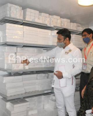 Photo Caption : Minister Dr Sudhakar inspecting the preparation of the COVID-19 vaccination storage centre at Health and Family welfare Department, Anand Rao Circle, in Bengaluru on Sunday 10th January 2021