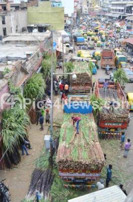 Sugarcane being stocked for Makar Sankranti Festival at KR Market, in Bengaluru on Monday 11th January 2021