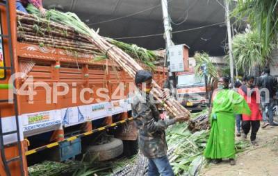 Event Description : Sugarcane being stocked for Makar Sankranti Festival at KR Market, in Bengaluru on Monday 11th January 2021