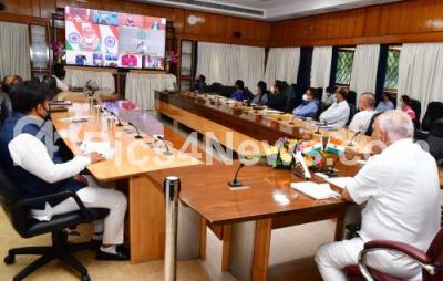 Photo Caption : CM BS Yediyurappa participated in PM Narendra Modi virtual meeting on COVID-19 vaccination at Home office Krishna, also seen are Medical Education Minister Dr. K Sudhakar and others, in Bengaluru on Monday 11th January 2021