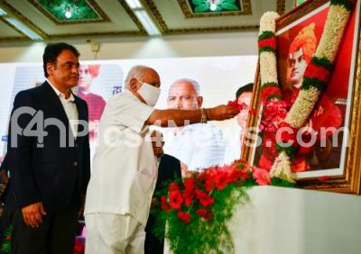 CM BS Yediyurappa with DCM Ashwath Narayan and others paid tribute to Swami Vivekananda, on his birth anniversary during the National Youth Day program at Vidhan Soudha, in Bengaluru on Tuesday 12th January 2021