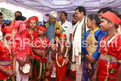 Photo Caption : Minister ST Somashekar and M. Rudresh, Chairperson of Rural Development and Panchayat Raj interact with children during Sankranti Jatre Celebration at Sompura on the occasion of Makar Sankranti Festival, in Bengaluru on Thursday 14th January 2021