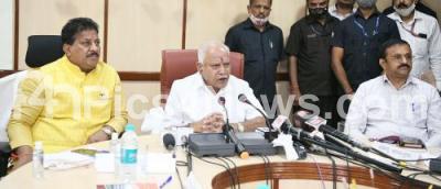 Photo Caption : Chief Minister BS Yediyurappa and BDA Chairman SR Vishwanath addressing a press conference after review meeting of the BDA (Bangalore Development Authority) , in Bengaluru on Monday 18th January 2021