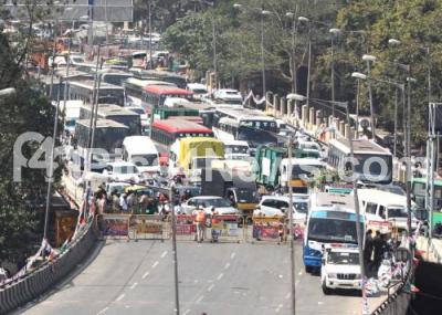 Photo Caption : Traffic jam during Congress party workers led by KPCC President DK Shivakumar and CLP leader Siddaramaiah participated in a Raj Bhavan Chalo Rally, in support of farmers protesting against the new farm laws, in Bengaluru on Wednesday 20th January 2021