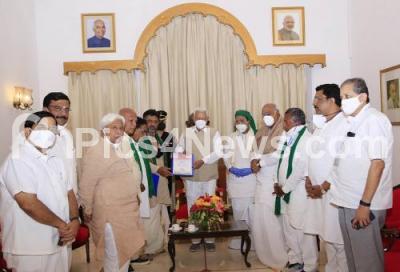 Photo Caption : Congress party workers led by KPCC President DK Shivakumar and CLP leader Siddaramaiah submitting memorandum to Governor Vajubhai Vala at Raj Bhavan, in Bengaluru on Wednesday 20th January 2021