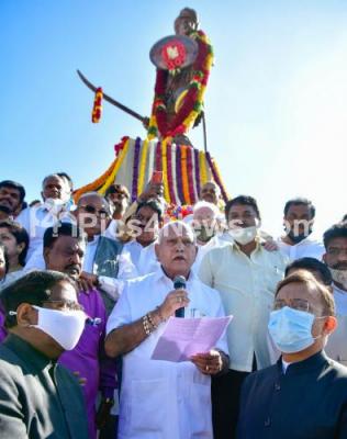 Photo Caption : CM BS Yediyurappa paid homage to the valiant freedom fighter Sangolli Rayanna by garlanding the statue on his death anniversary, in Bengaluru on Tuesday 26th January 2021