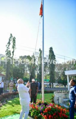 Photo Caption : CM BS Yediyurappa hoisted the national flag on the 72nd Republic Day celebrations, in Bengaluru on Tuesday 26th January 2021