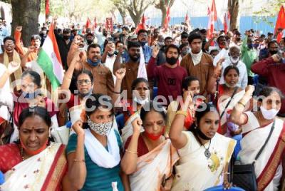 Photo Caption : Members of various organisations participated in the Constitution Protection Day program on the occasion of 72nd Republic Day celebrations, in Bengaluru on Tuesday 26th January 2021