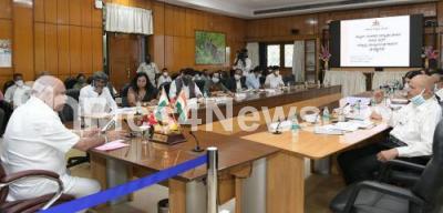 Photo Caption : CM BS Yediyurappa with Minister Kota Srinivas Poojary, Chief Secretary Ravikumar and others during a meeting on scholarship after Metric, in Bengaluru on Wednesday 27th January 2021