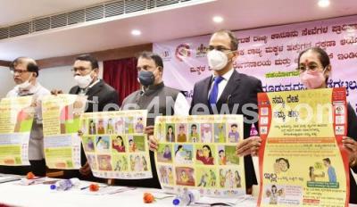 Photo Caption : Dr. Anthony Sebastian, Chairman, Karnataka State Child Rights Protection Commission, Sashidhar Shetty, Member Secretaries Karnataka State Legal Services Authority, Thanga Perumal Ponpandi, National Administrators, Bharat Traders Homes Netherland releasing posters during state level seminar on Prevent Child Abuse at a private hotel, in Bengaluru on Thursday 28th January 2021