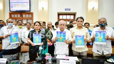 Photo Caption : CM BS Yediyurappa with DCM Ashwath Narayan, Minister Suresh Kumar, Department of Economic Affairs N. Prasad, Economic Department Secretary and Managing Director of KSFC Ek Roop Kaur during releasing a booklet of the Karnataka State Finance Corporation as part of the diamond jubilee celebration at Vidhana Soudha, in Bengaluru on Saturday 30th January 2021