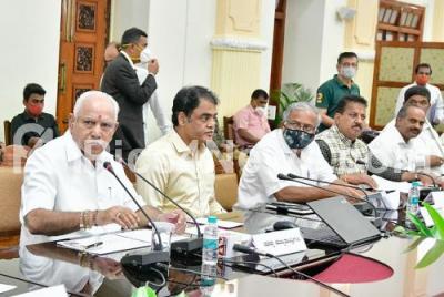 Photo Caption : CM BS Yediyurappa with DCM Ashwath Narayan, Minister Suresh Kumar and others during Apex Supervisory Committee Meeting of Bangalore Mission 2022 Program at Vidhana Soudha, in Bengaluru on Saturday 30th January 2021