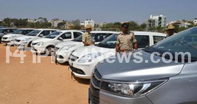 Photo Caption : Police personnel inspects 48 seized cars worth 4 Crore, were recovered by KG Halli Police personnel, in Bengaluru on Monday 1st February 2021