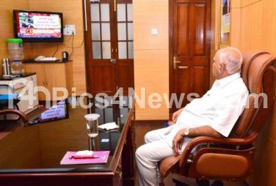 Photo Caption : CM BS Yediyurappa watching Central Budget, in Bengaluru on Monday 1st February 2021