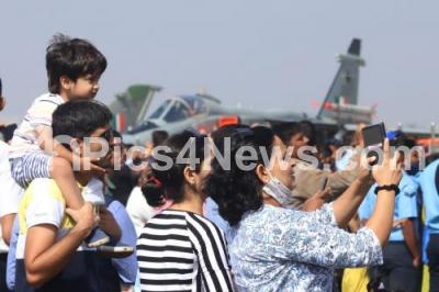 Visitors watch various aircrafts on static display during rehearsal ahead of AERO India 2021 at Yelahanka Airbase, in Bengaluru on Tuesday 2nd February 2021