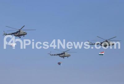 Photo Caption : Ensign helicopters performing during rehearsal ahead of AERO India 2021 at Yelahanka Airbase, in Bengaluru on Tuesday 2nd February 2021