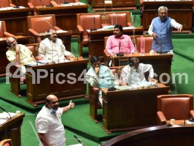 Photo Caption : Minister ST Somashekhar and JDS MLA Bandeppa Kashempur argue during the Assembly Session at Vidhan Soudha, in Bengaluru on Wednesday 3rd February 2021